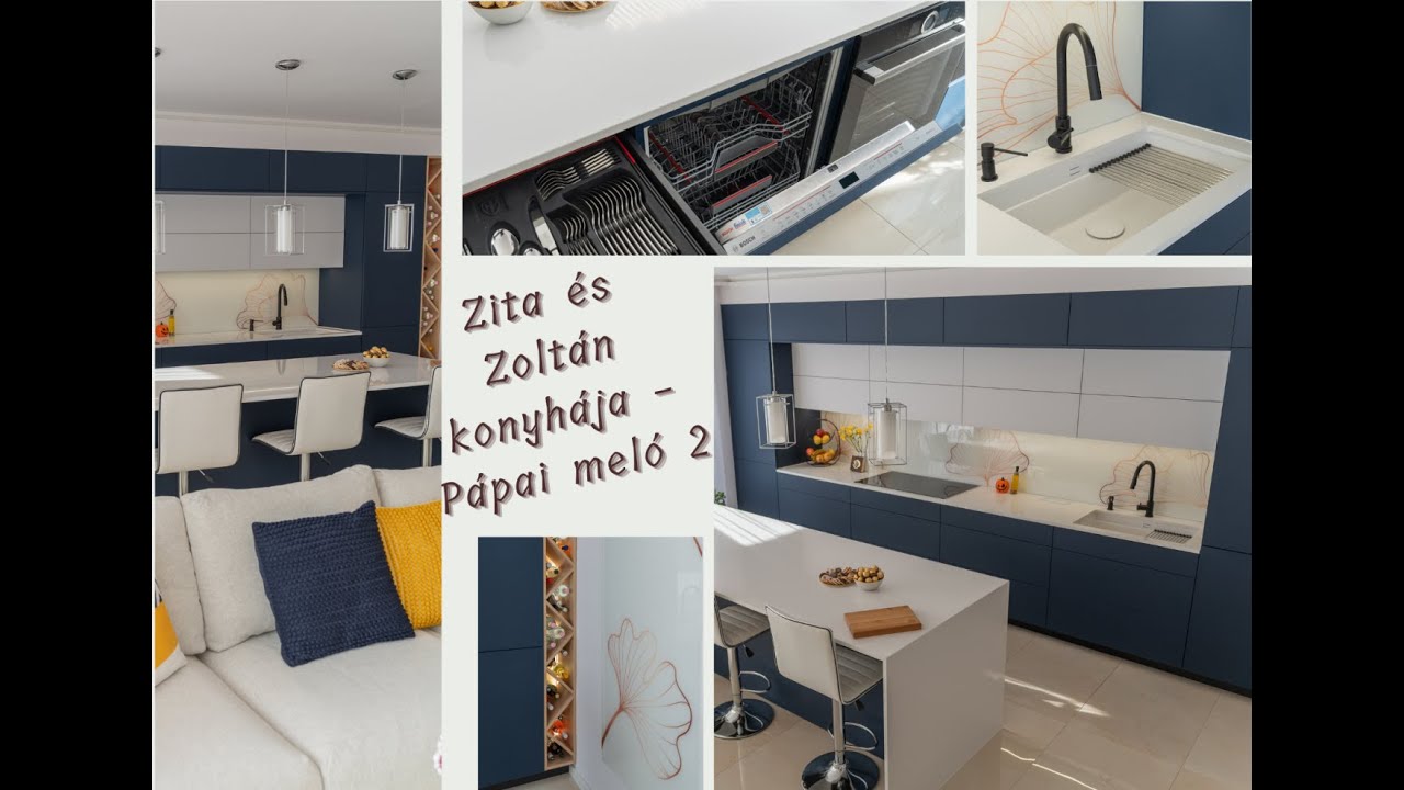 Zoltán gépészmérnök. Gondolkoztak rajt, hogy elhagyják az országot, vagy felújítsák régi családi házukat. Utóbbi mellett döntöttek és minket kerestek meg a konyha elkészítésével, mert látták interneten a kék Rehau frontos konyhánkat. Ráadásul nagyon felkészülve érkeztek! Tudták, hogy minden vasalat blum lesz servodrive nyitással, hogy mit hova szeretnének beépíteni, hogy hol fog készülni a pult és az üveghátfal stb. Minimális igazítás után el is fogadták a terveket és indulhatott a gyártás, viszont a fényképezésre itt is várni kellett, hogy a többi szakember is befejezhesse a munkát, de úgy gondoljuk megérte! Ez a bútor már ki fogja szolgálni Zitát és Zoltánt ebben a házban, mi pedig várjuk, hogy a felső szint bútorozásával is felkeressenek minket.